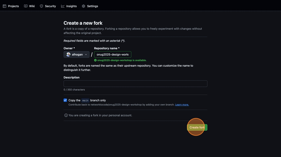 3. Click “Create fork”