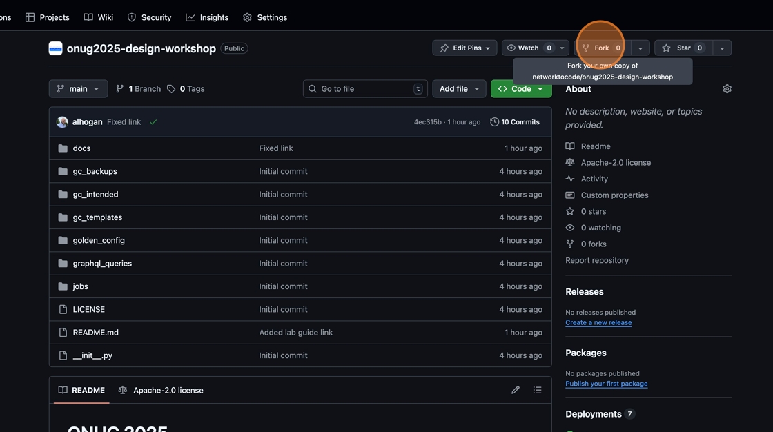 1. In Firefox, open a new tab and Navigate to https://github.com/networktocode/onug2025-design-workshop