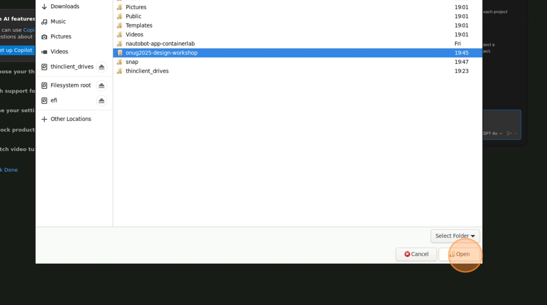7. Select the “onug2025-design-workshop” folder and click “Open”