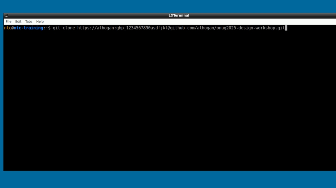 git clone https://{GITHUB_USERNAME}:{GITHUB_PAT}@github.com/{GITHUB_USERNAME}/onug2025-design-workshop.git