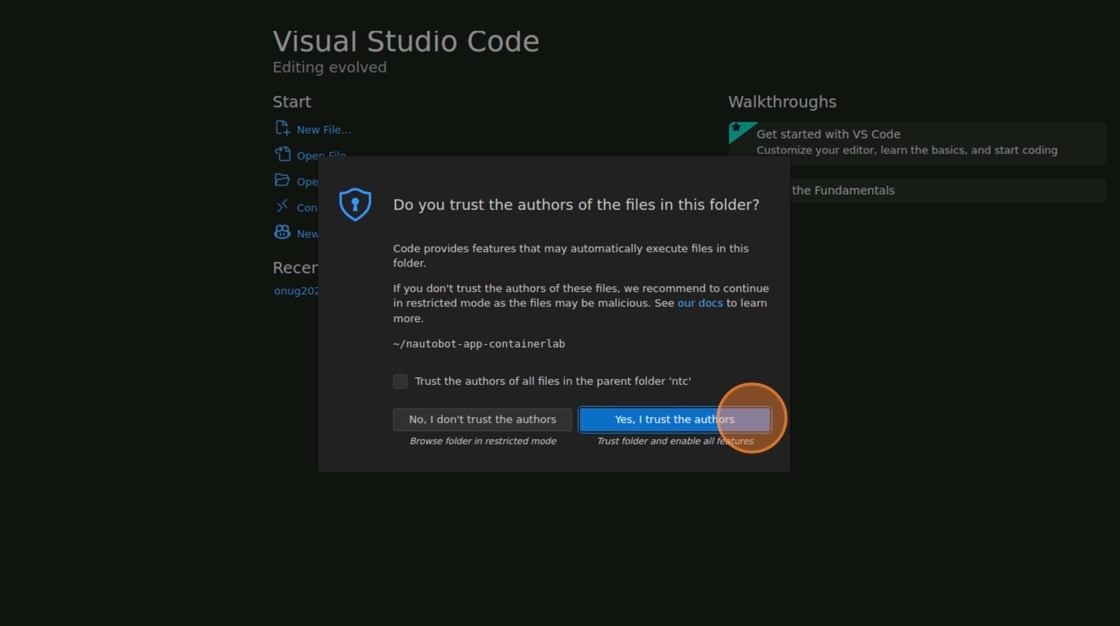 4. Select the “nautobot-app-containerlab” folder, then Click “Open”