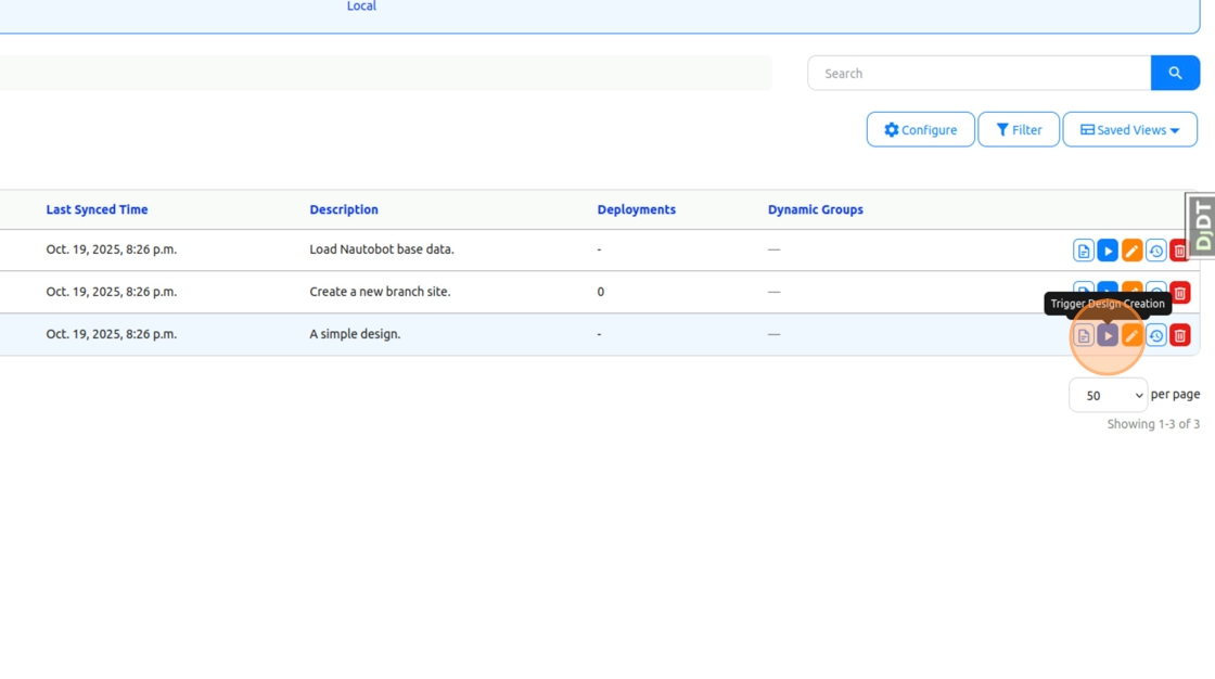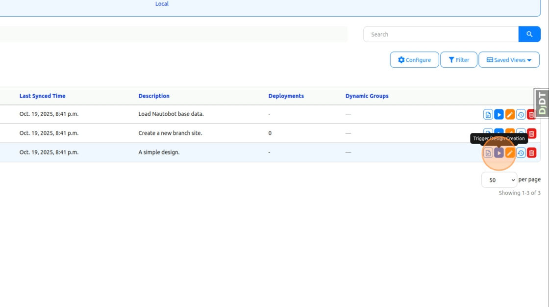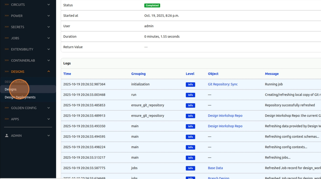 8. let’s run the Design. Go to Nautobot in your Browser. Click “Designs -> Designs” in the Navbar.