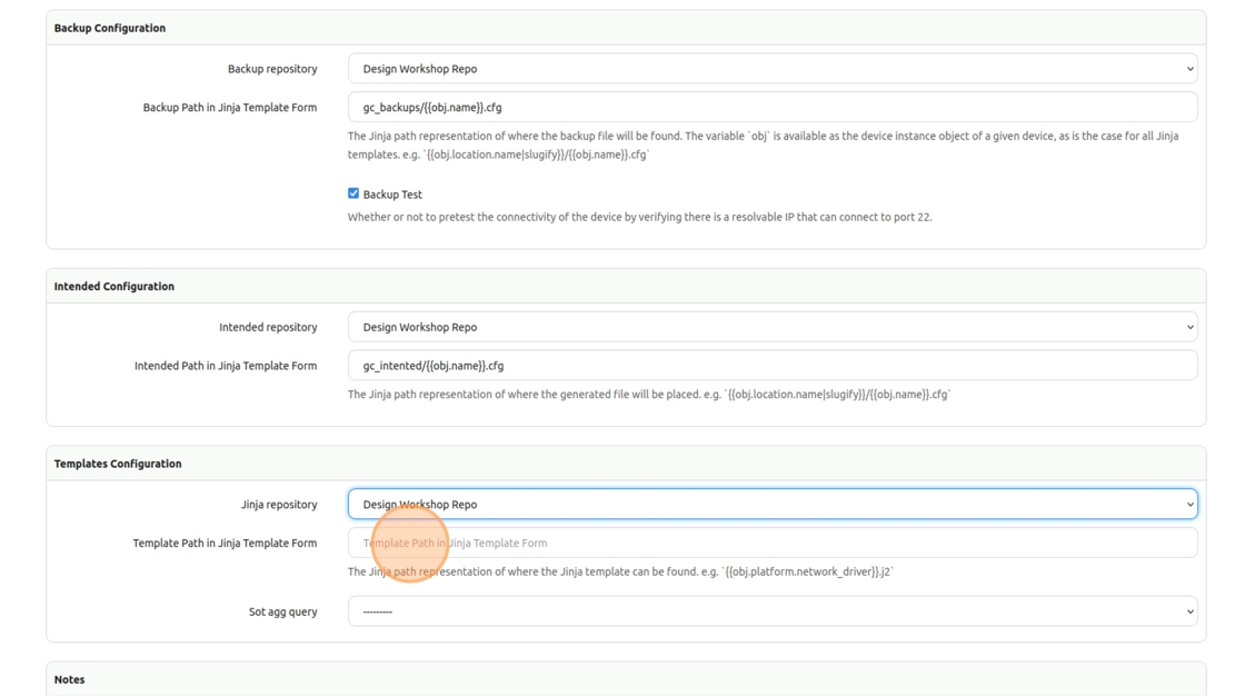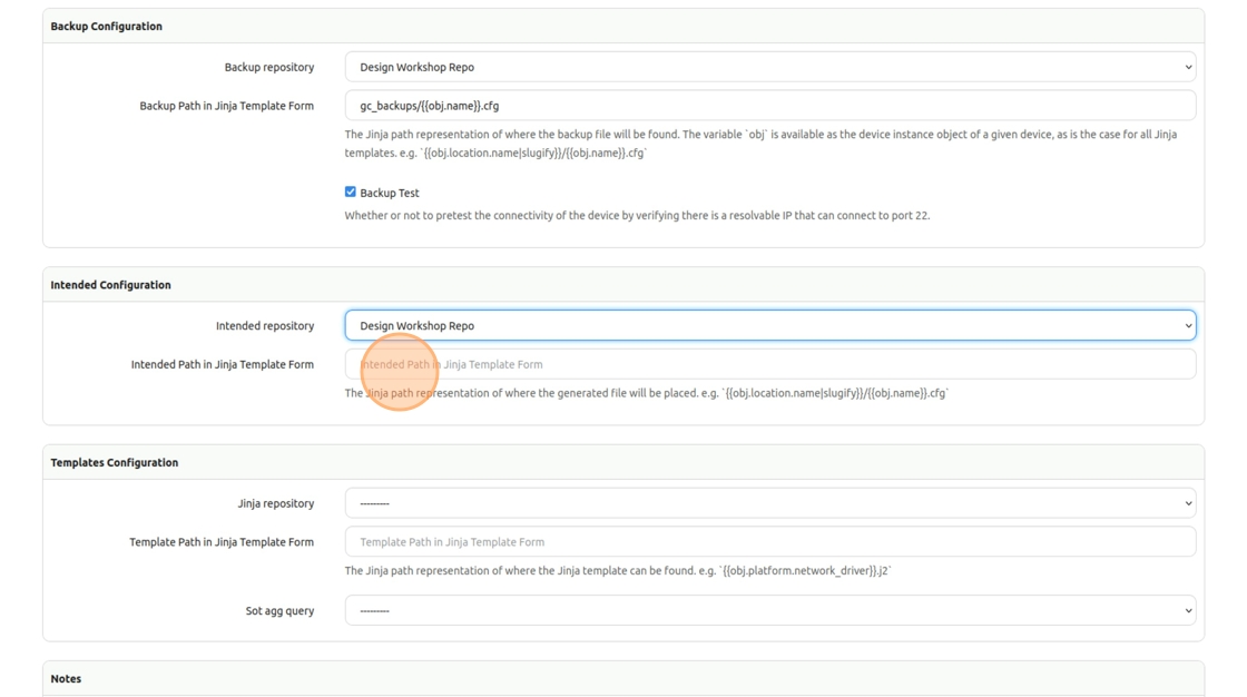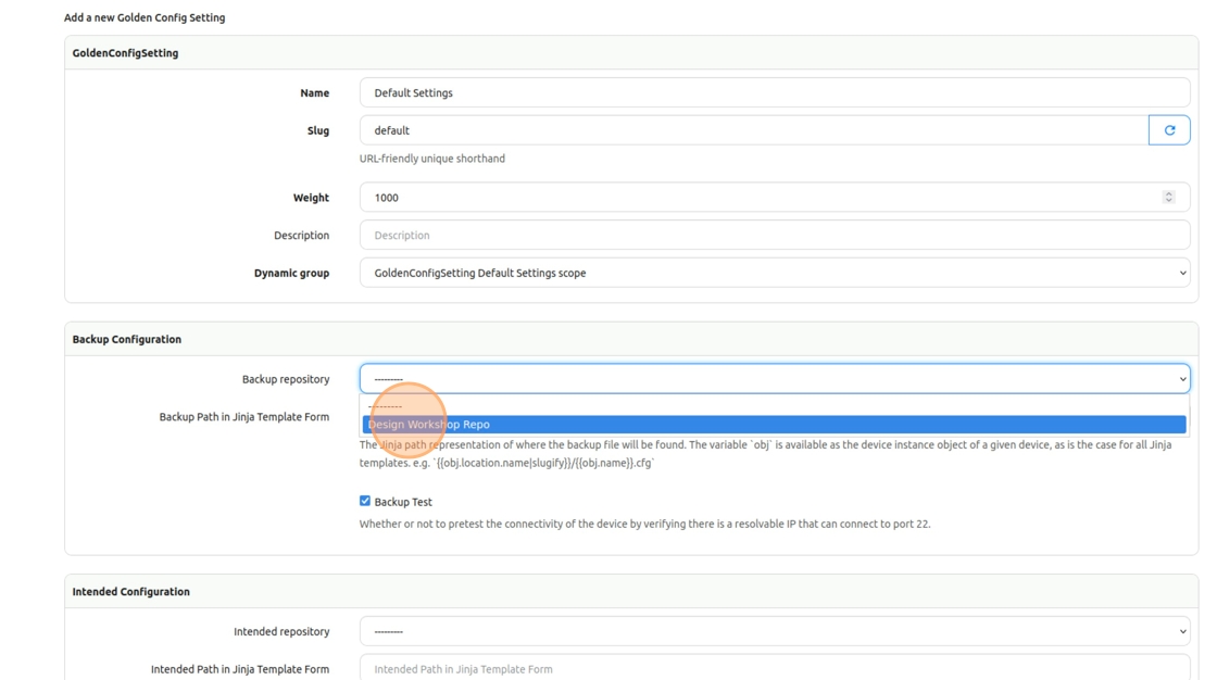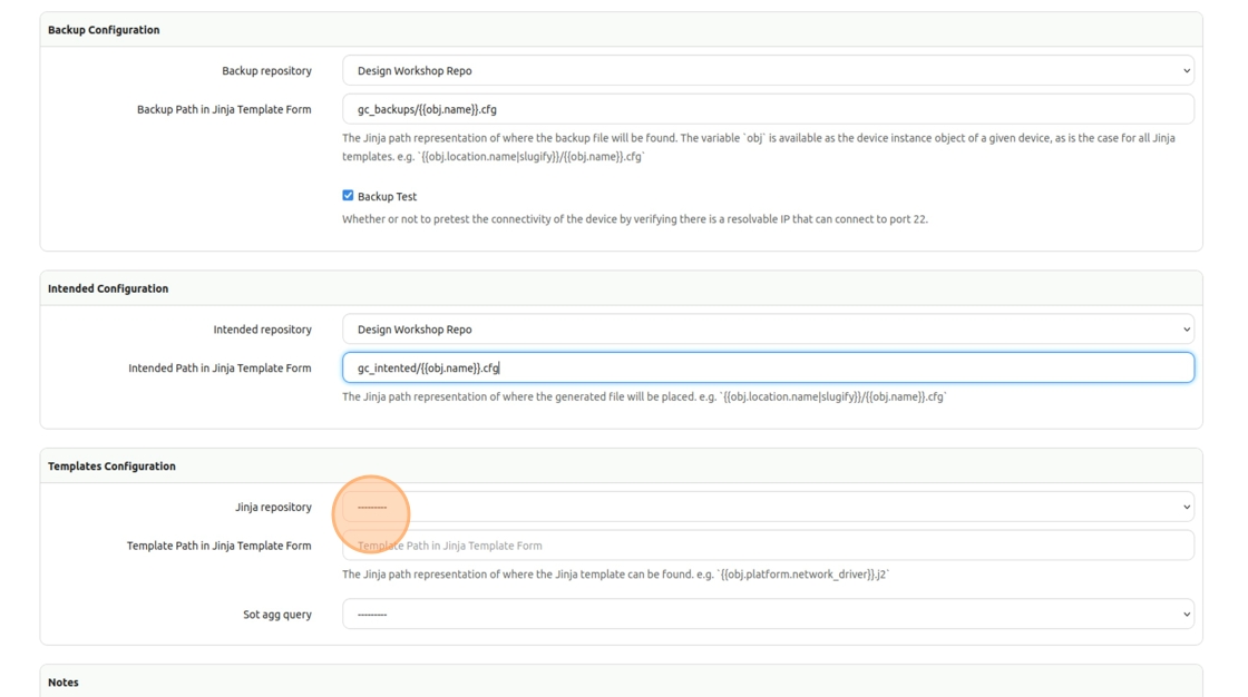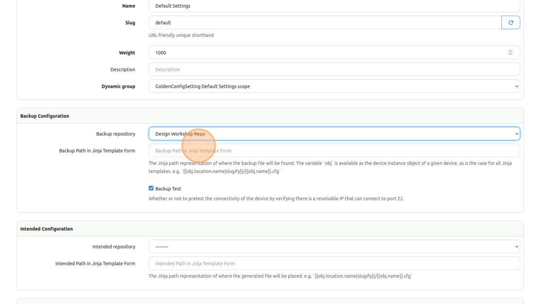 7. Type gc_backups/{{obj.name}}.cfg, this tells Golden Config where to save our backup files (We will use it in a later lab)