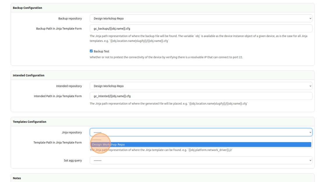 11. Last, for the “Jinja repository”, select “Design Workshop Repo”