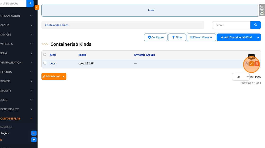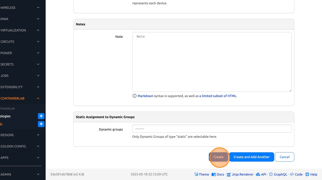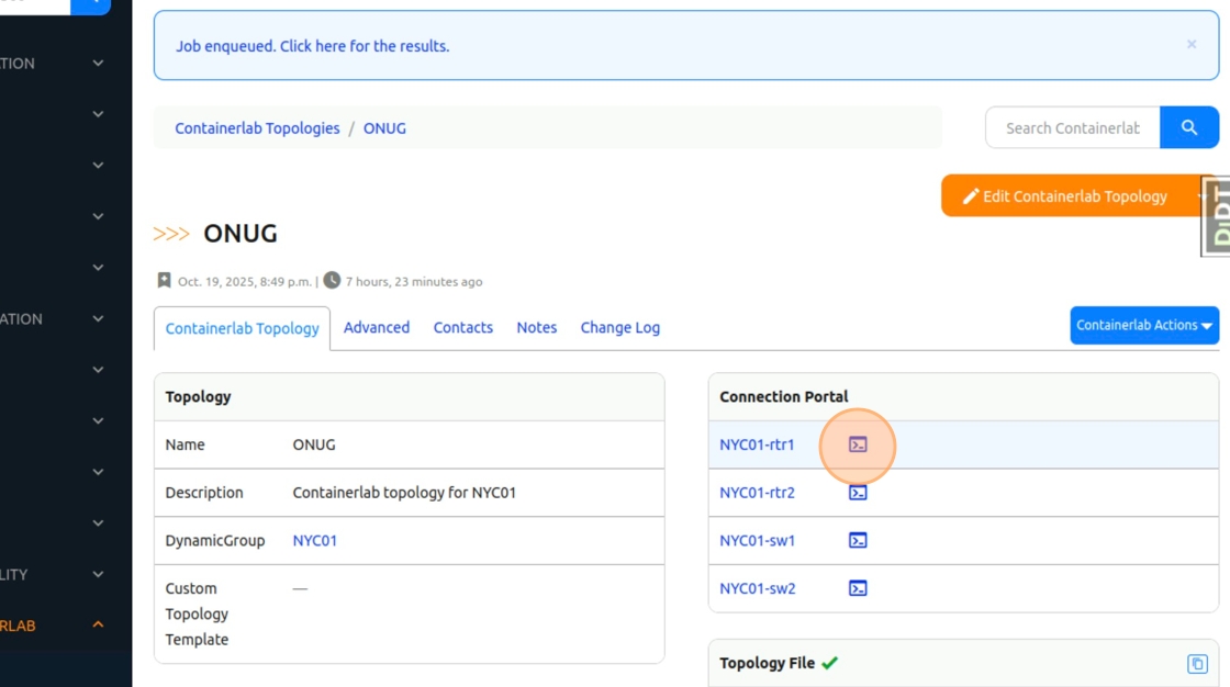 12. Back in Nautobot, Click on the Containerlab Actions button in the top right