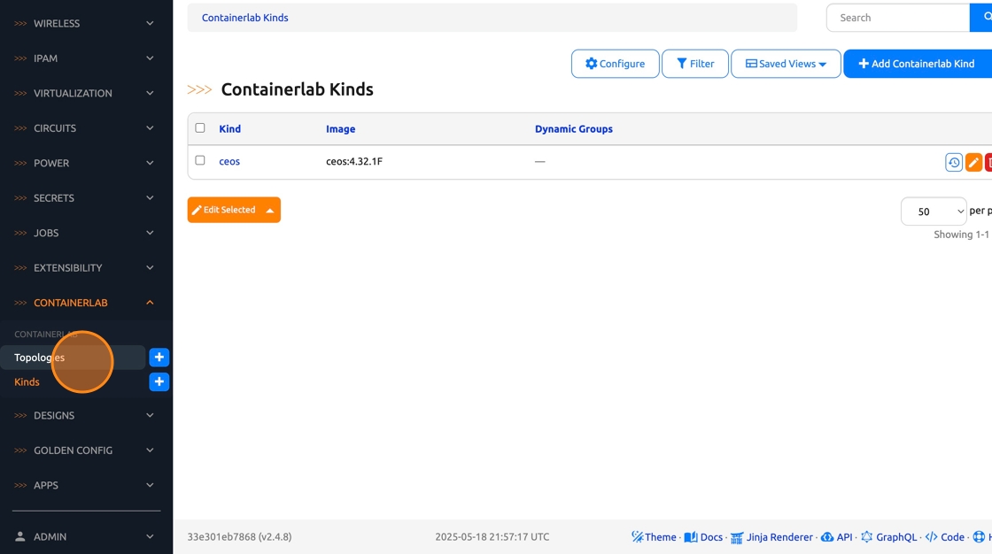 2. Click “Containerlab -> Kinds”
