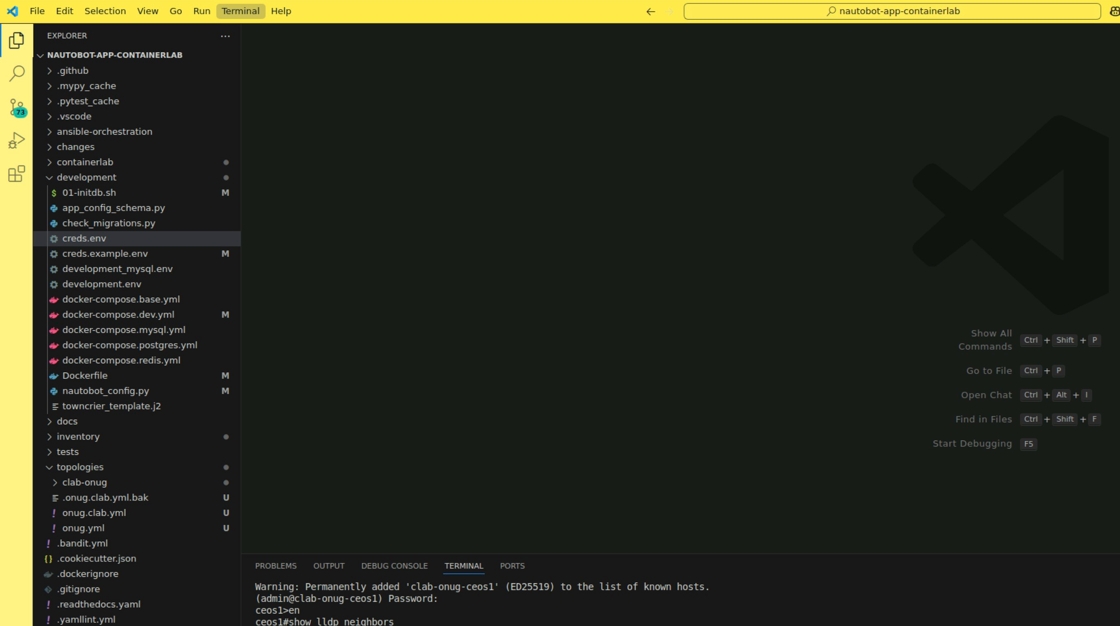1. Open the VSCode instance that we started Nautobot from (should have yellow borders).