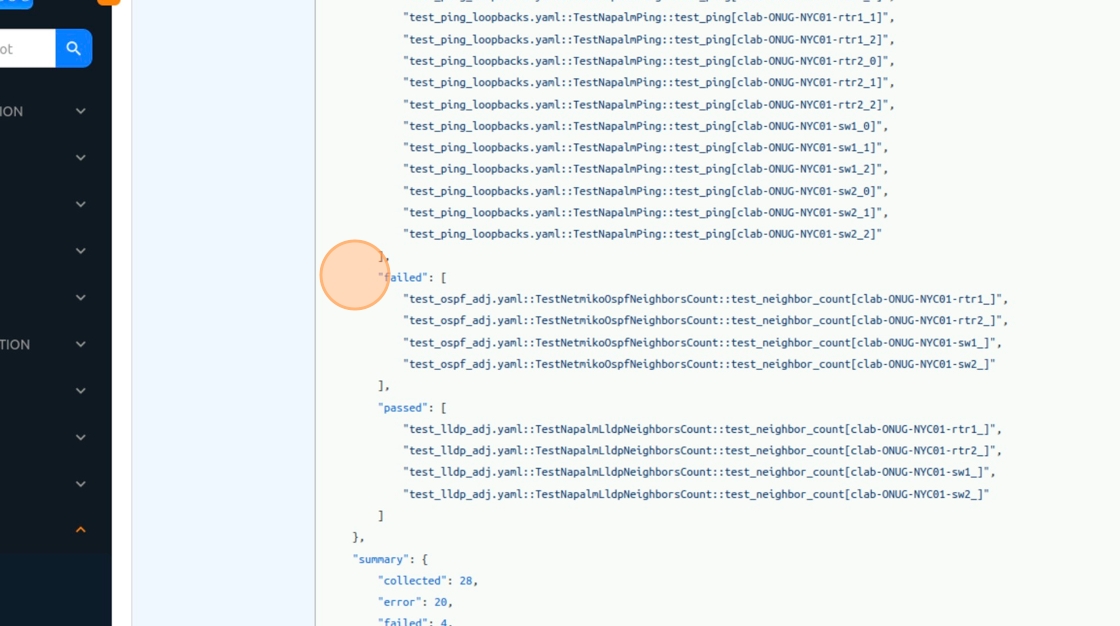 8. Under the “failed” key, you should see all other tests failing for all four hosts