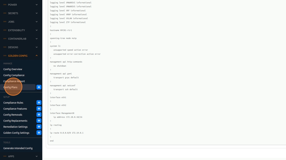 24. To see the compliance report, click “Golden Config” in the left navbar