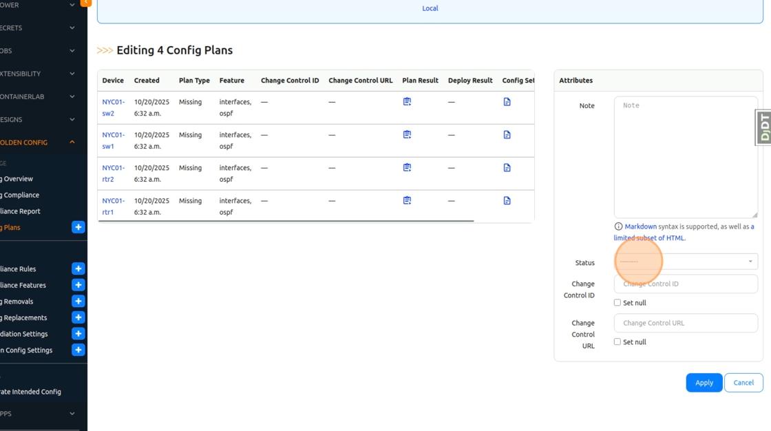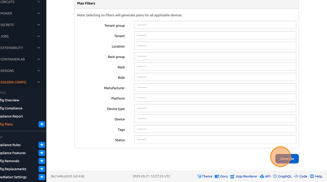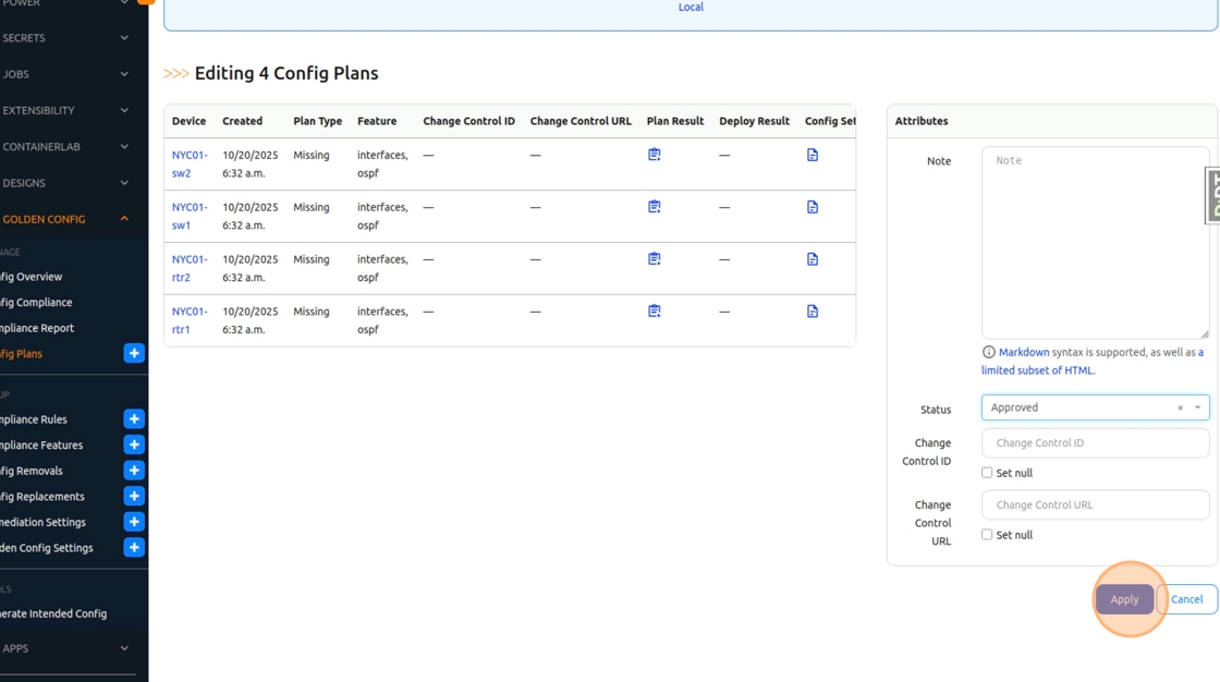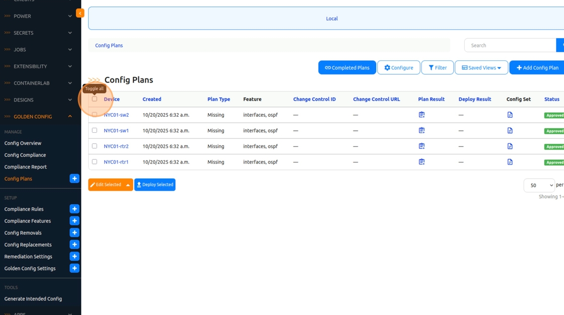 1. Once again, let’s apply the changes we made to our templates on the network devices. Navigate to Nautobot