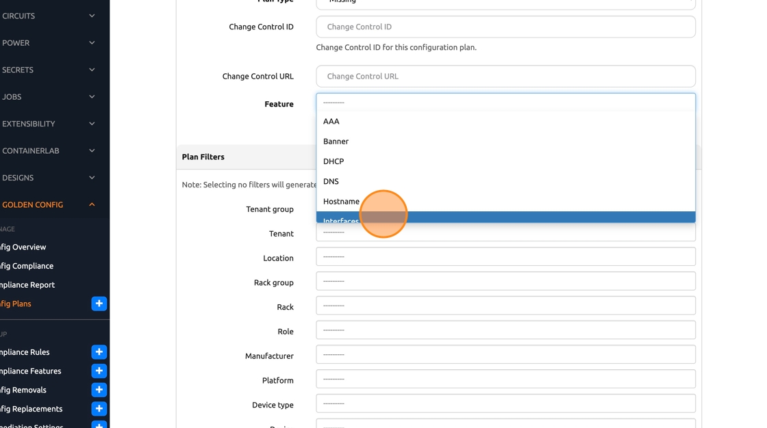 15. Click “Config Plans” in the left navbar