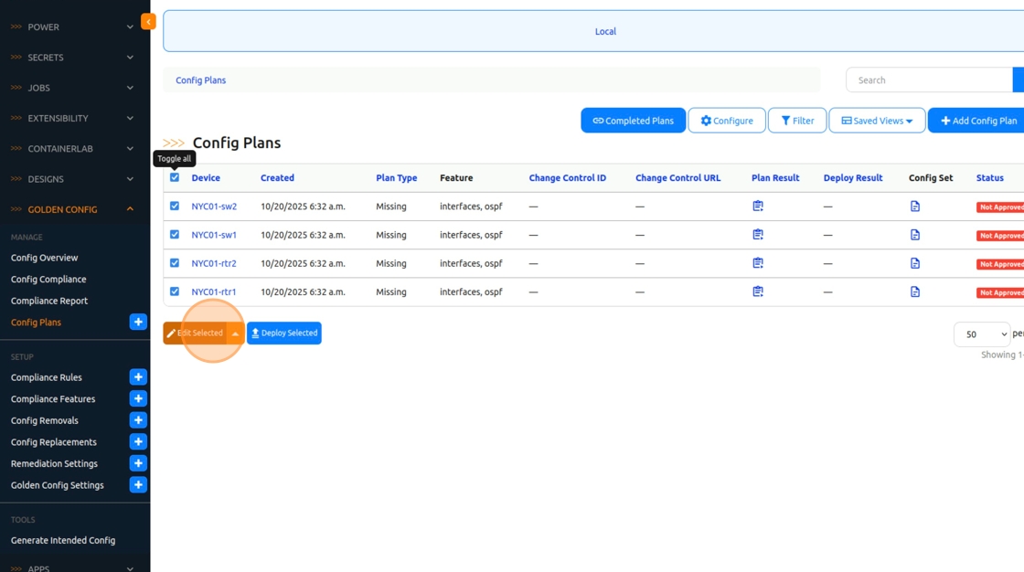 3. Run the “Execute All Golden Configuration Jobs - Multiple Device” Job again.