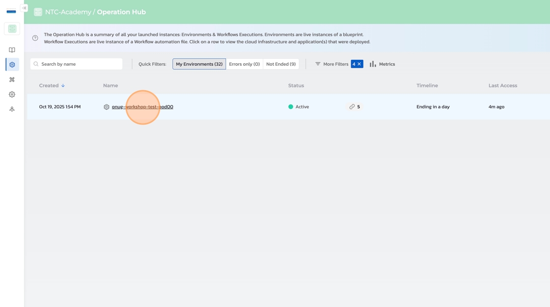 6. Click the name of your active pod, “onug-workshop-podXX”